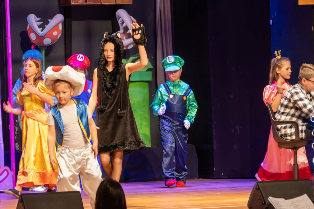 Viele Monate haben der Kinderchor des ArcheMusicalProjekts Piccolino aus Freyung unter der Leitung von Manuela Jüttner und die jungen Gesangsschülerinnen und -schüler von Joachim vom Berg aus den Musikschulen der Stadt und des Landkreises Passau geübt, geprobt und gespielt. Vor der Kulisse des auch dieses Jahr wieder einzigartigen Bühnenbildes mit Topf-Piranha-Pflanzen und einem überdimensionalen Nintendo-Controller boten die jungen Darsteller und Darstellerinnen zwischen 7 und 16 Jahren ein witziges und zugleich brandaktuelles Stück indem neben den großen und kleinen Schauspielerinnen und Schauspielernvor allem die mehrstimmigen Chöre im Mittelpunkt standen.